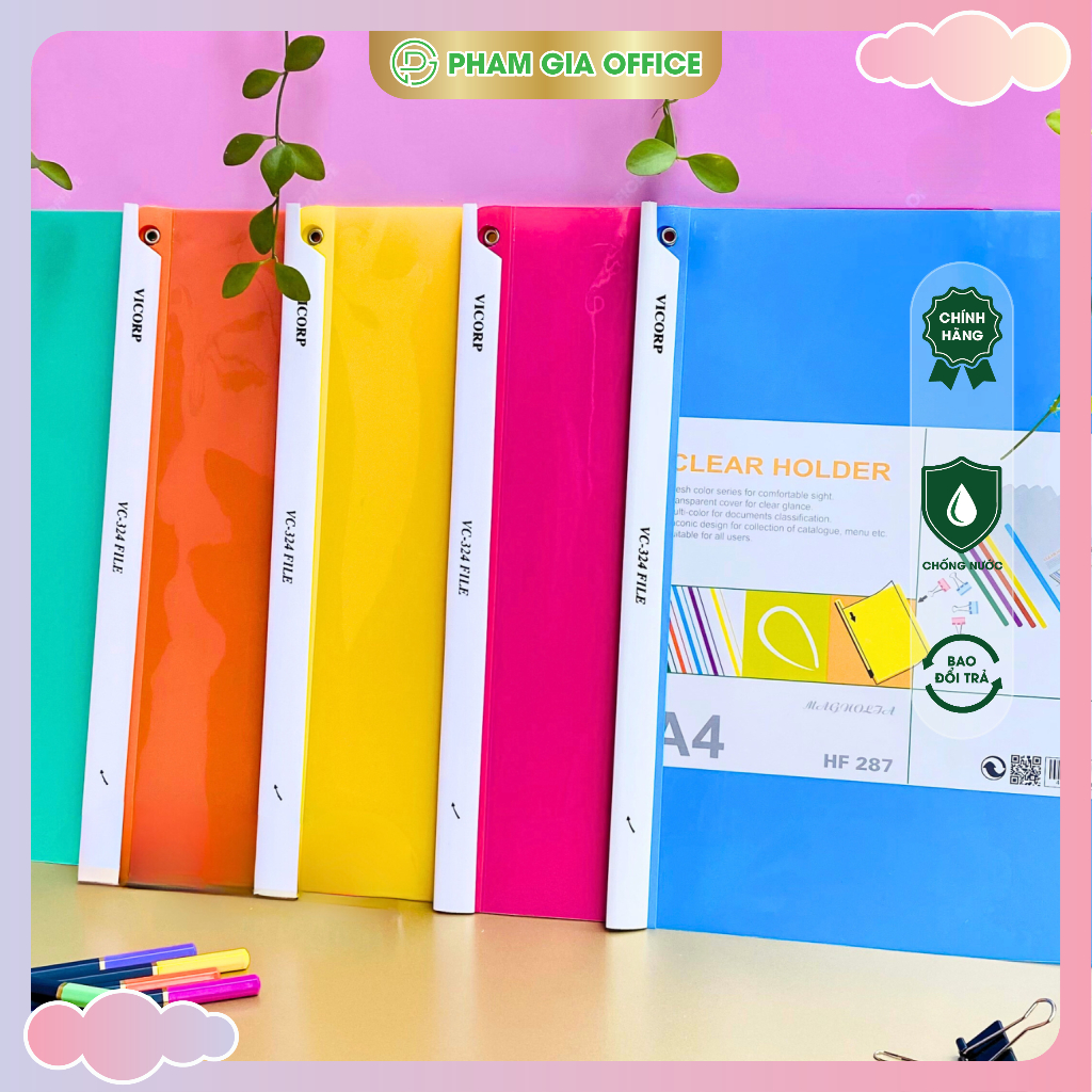 • Bìa màu (Xanh, Đỏ, Vàng): Giúp phân loại hồ sơ theo phòng ban hoặc mức độ ưu tiên của công việc.