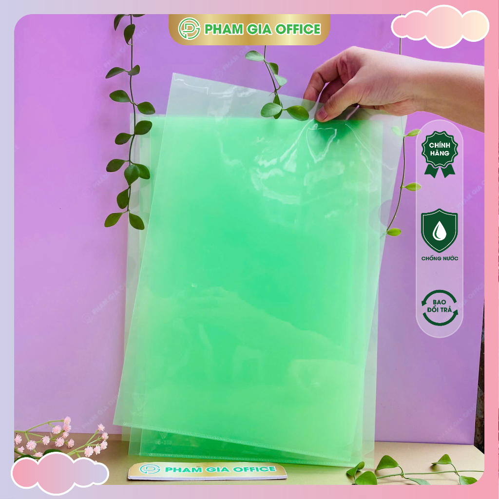 Trả lời: Đây là hiện tượng “Copy Safe”. Các loại bìa lá rẻ tiền làm từ nhựa PVC hoặc nhựa tái chế thường có các chất hóa học làm mực in bị bong khỏi giấy và dính chặt vào bìa nhựa. Tuy nhiên, bìa lá chính hãng VC tại Phạm Gia Office sử dụng nhựa PP nguyên sinh có đặc tính chống tĩnh điện và không phản ứng hóa học với mực in, đảm bảo văn bản của bạn luôn hoàn hảo sau nhiều năm.