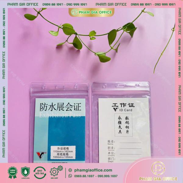 Kiểu dáng: Thiết kế đứng, bo góc an toàn, mặt trước trong suốt hiển thị nội dung rõ ràng, phần đầu có lỗ tròn và khe cài chữ nhật dùng cho móc treo hoặc dây đeo.