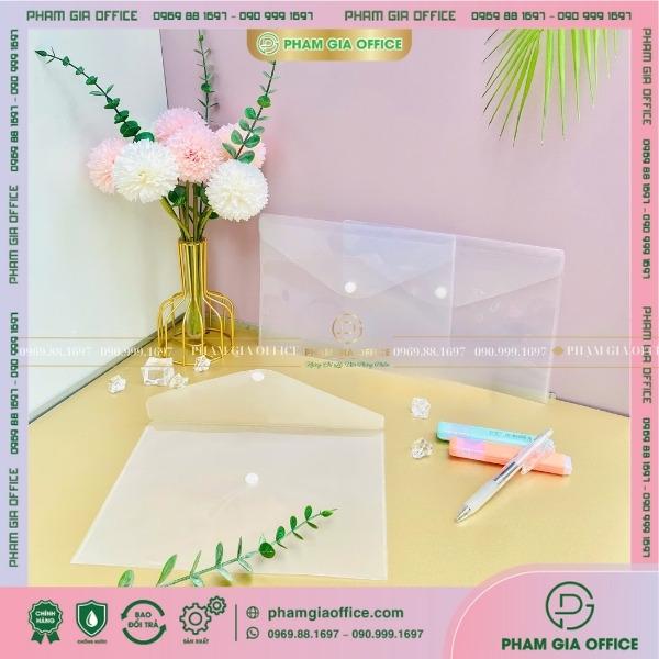 Bìa nút dùng để lưu trữ các giấy tờ, bảo quản khỏi bị ướt hoặc bụi bẩn. Hình dáng gọn gàng, có nút nhựa gắn chắc chắn ở miệng bìa giúp các giấy tờ và vật dụng không bị rơi ra ngoài.