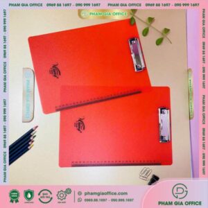 • Đặc điểm: là sản phẩm làm từ bìa cứng được nhập khẩu từ Thái Lan, dán simily bên ngoài, kẹp inox phía trên để kẹp giấy các khổ A4 – A5.